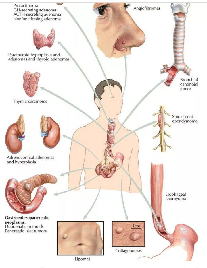 Multiple endocrine neoplasia type 1 (MEN-1) is one of a group of disorders, the multiple endocrine neoplasias, that affect the endocrine system through development of neoplastic lesions in pituitary, parathyroid gland and pancreas.