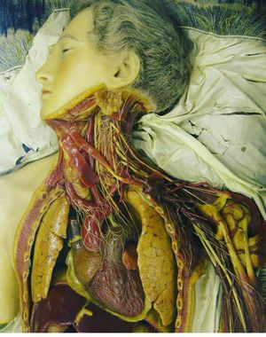 Sternocleidomastoid,sternohyoid,parotid gland,arch of aorta and it's branches,lungs,heart,cords of brachial plexus,superior vena cava,axillary artery,trachea,trapezius,vagus,sympathetic trunk,facial nerve,digastric muscle,etc