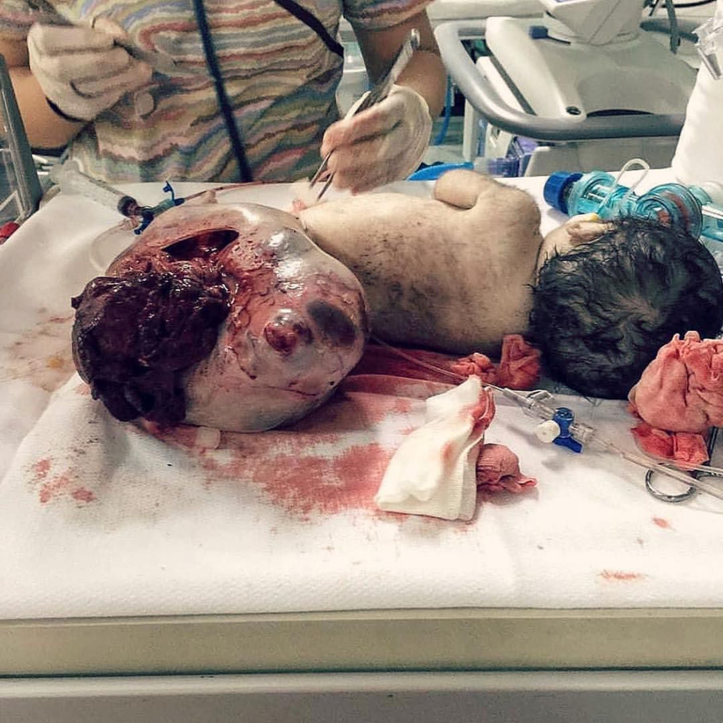 Is this child alive, because the health professional is not wearing a gown or has anesthesia hooked up?