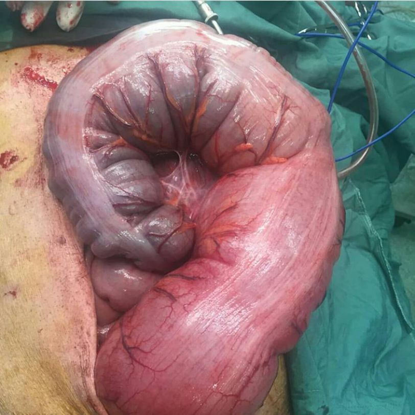 Sigmoid volvulus is the most common form of volvulus of the gastrointestinal tract; it is responsible for 8% of all intestinal obstructions. Sigmoid volvulus is particularly common in elderly persons. Patients present with abdominal pain, distention, and absolute constipation.Predisposing factors to sigmoid volvulus include chronic constipation, megacolon. Plain abdominal radiograph findings are usually diagnostic .
