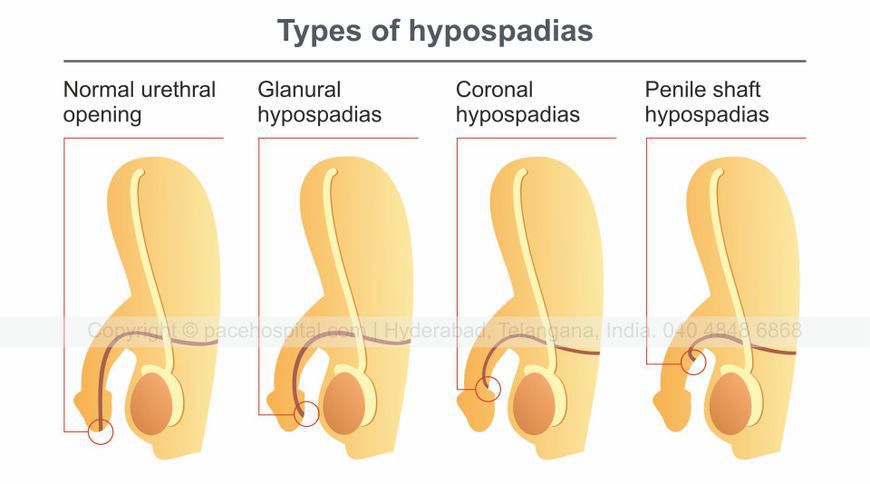 Hypospadias is a birth defect in boys in which the opening of the urethra is not located at the tip of the penis. In boys with hypospadias, the urethra forms abnormally during weeks 8–14 of pregnancy. The abnormal opening can form anywhere from just below the end of the penis to the scrotum.
