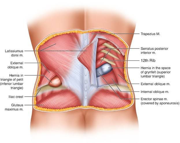 Lumbar hernia is the protrusion of intraperitoneal or extraperitoneal contents through a defect of the posterolateral abdominal wall.