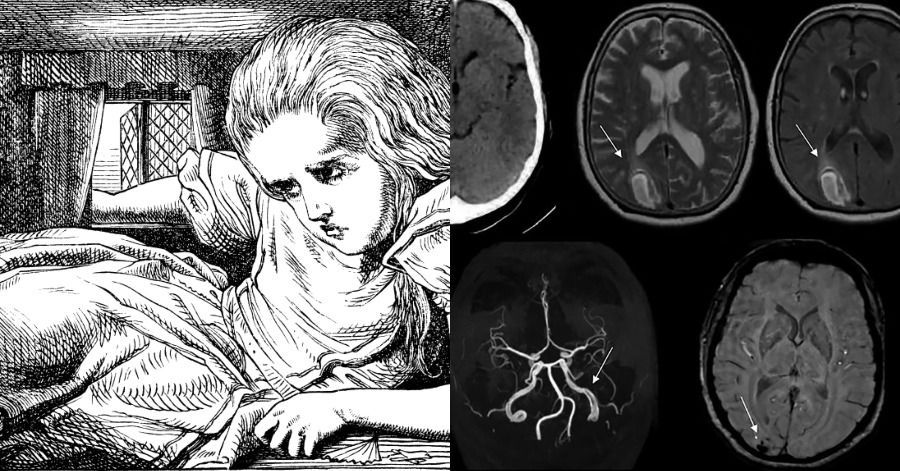 Alice in wonderland syndrome (AIWS) describes a set of symptoms with alteration of body image. An alteration of visual perception is found in that way that the sizes of body parts or sizes of external objects are perceived incorrectly. The most common perceptions are at night.