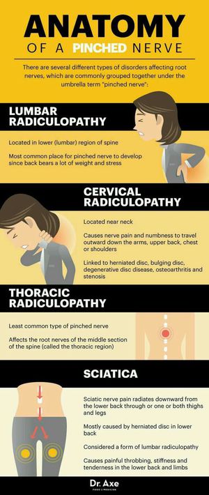 There are several different types of disorders affecting root nerves, which are commonly grouped together under the umbrella term "pinched nerve"