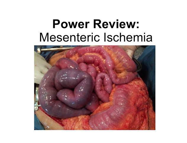 In mesenteric ischemia, a blockage in an artery cuts off blood flow to a portion of the intestine. Mesenteric ischemia (mez-un-TER-ik is-KEE-me-uh) occurs when narrowed or blocked arteries restrict blood flow to your small intestine. Decreased blood flow can permanently damage the small intestine.