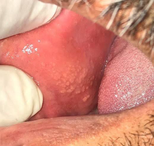 Fordyce spots, also called Fordyce granules, are small pimple-like structures that commonly form on the body. They're seen most often on male genitalia, especially around the shaft and testicles, but can be found on the lips and inner mouth. They're also present in female genitalia, especially around the labia.