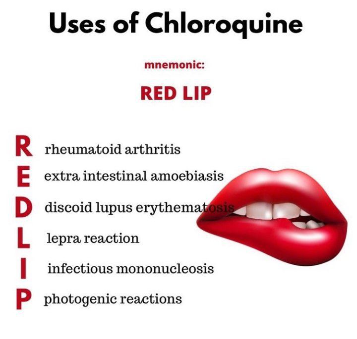 This picture presents and mnemonic to memorize the uses of chloroquine.