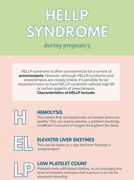 HELLP syndrome is a rare pregnancy complication. It is a type of preeclampsia and has similar symptoms. If you have HELLP syndrome, you may experience pain in the upper part of your belly, blurred vision, fatigue or swelling. Many women who have HELLP syndrome need to deliver their baby early.