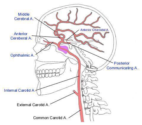 A VIP'S COMMA A: anterior choroidal artery (C7) V: Vidian artery (C2) I: inferolateral trunk (C4) P: posterior communicating artery (C7) S: superior hypophyseal artery (C6) C: caroticotympanic artery (C2) O: ophthalmic artery (C6) M: meningohypophyseal trunk (C4) M: middle cerebral artery (C7) A: anterior cerebral artery (C7)