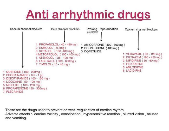 You can see the classification of antiarrhythmic drugs with their recommended dosage.