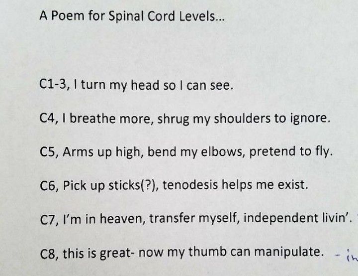 Here is an interesting poem to memorize spinal cord levels.