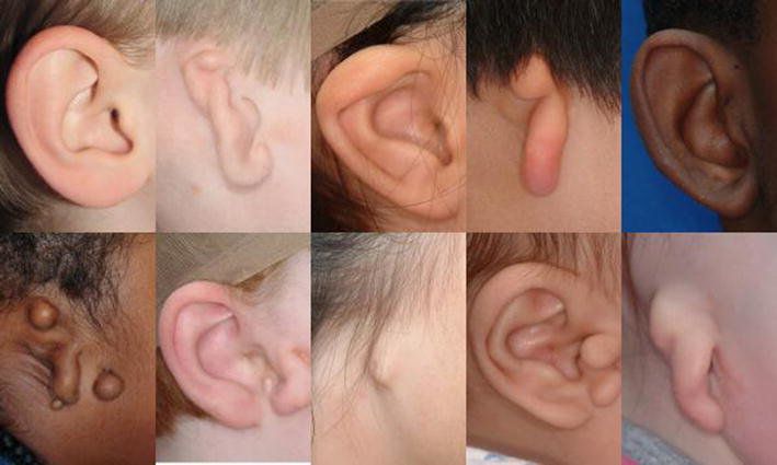 Anotia means absence of the external ear. Microtia is the term for an incompletely formed external ear. Aural atresia is the absence of the ear canal. Early in fetal life (about the 5th week) the complex process of development causes cells to move to
