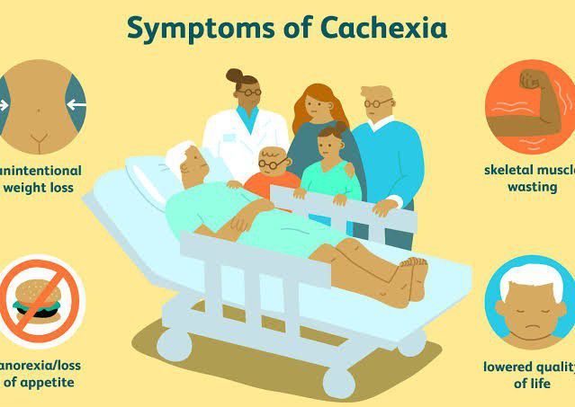 Symptoms of cachexia severe weight loss, including loss of fat and muscle mass. loss of appetite. anaemia (low red blood cells) weakness and fatigue.
