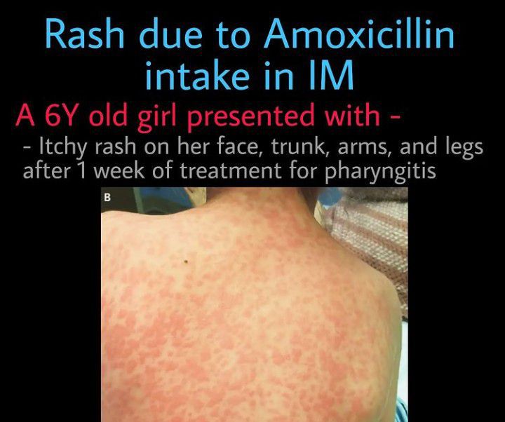 Here you can see a clinical case of the development of skin rash following amoxicillin intake in patient with infectious mononucleosis. It is quite frequent among beta-lactam-induced adverse drug reactions. ⠀ By: https://www.instagram.com/p/Cf_uu-ihc_r/?igshid=YmMyMTA2M2Y=