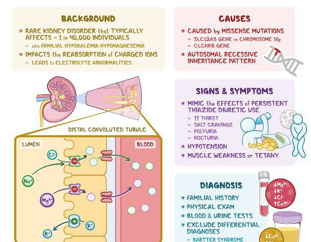 Gitelman syndrome is a kidney disorder that causes an imbalance of charged atoms (ions) in the body, including ions of potassium, magnesium, and calcium. The signs and symptoms of Gitelman syndrome usually appear in late childhood or adolescence.