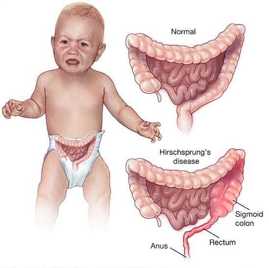 Hirschsprung disease is a birth defect in which some nerve cells are missing in the large intestine, so a child's intestine can't move stool and becomes blocked.