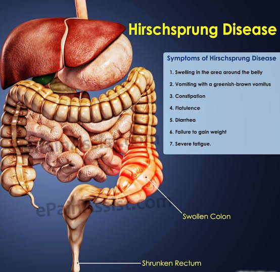 Symptoms Swollen belly. Vomiting, including vomiting a green or brown substance. Constipation or gas, which might make a newborn fussy. Diarrhea. Delayed passage of meconium — a newborn's first bowel movement.