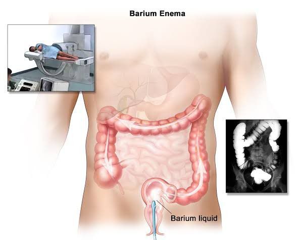 A contrast enema is an x-ray study that uses a water-soluble contrast agent containing iodine or barium to show the structure of the rectum, colon, and large intestine. Contrast enemas are commonly referred to as barium enemas.