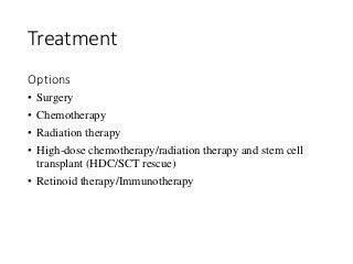 A regimen of the following treatments: Combination chemotherapy. Surgery. Two courses of high-dose combination chemotherapy followed by stem cell rescue. Radiation therapy. Monoclonal antibody therapy (dinutuximab) with interleukin-2 (IL-2), granulocyte-macrophage colony-stimulating factor (GM-CSF), and isotretinoin.