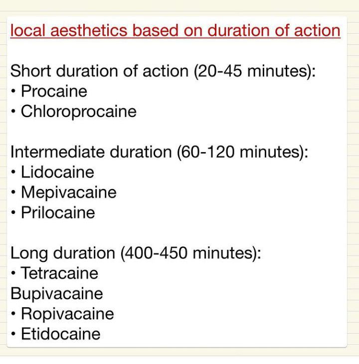 Here is a quick review of the duration of action of local anaesthesia.