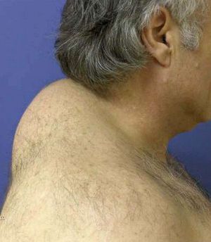 Buffalo hump in Cushing syndrome or exogenous corticosteroid intake.