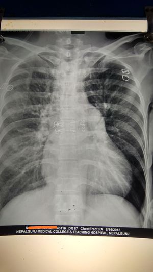 I think there's pneumothorax with collapsed lung on the left side, increased bronchial markings on right