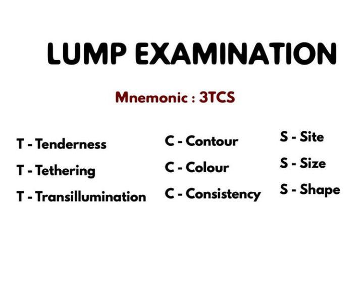 Here is a mnemonic to remember lump examination.