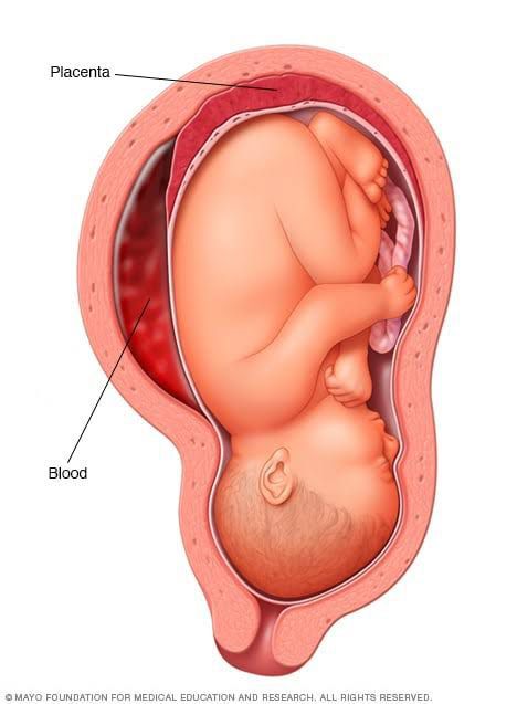 Placental abruption is a serious condition in which the placenta separates from the wall of the uterus before birth. It can separate partially or completely. If this happens, your baby may not get enough oxygen and nutrients in the womb. You also may have pain and serious bleeding.