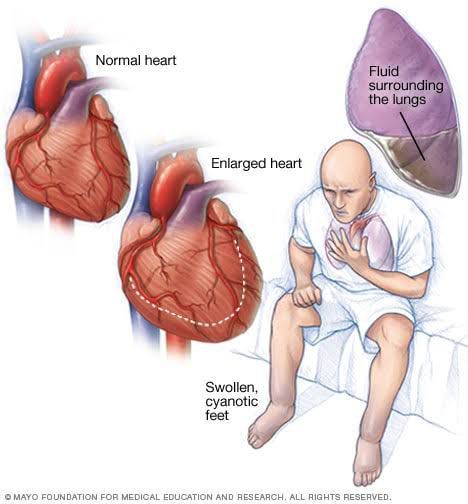 sometimes known as congestive heart failure — occurs when the heart muscle doesn't pump blood as well as it should. When this happens, blood often backs up and fluid can build up in the lungs, causing shortness of breath.