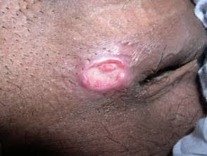 Granuloma inguinale is a rare sexually transmitted infection caused by the bacteria Klebsiella granulomatis. It leads to chronic inflammation and scarring of the genitals. Granuloma inguinale typically causes a painless, red lump on or near the genitals, which slowly enlarges, then breaks down to form a sore.