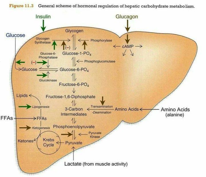 General scheme of hormonal regulation in liver.