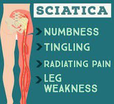 Pain that radiates from your lower (lumbar) spine to your buttock and down the back of your leg is the hallmark of sciatica. You might feel the discomfort almost anywhere along the nerve pathway, but it's especially likely to follow a path from your low back to your buttock and the back of your thigh and calf. The pain can vary widely, from a mild ache to a sharp, burning sensation or excruciating pain. Sometimes it can feel like a jolt or electric shock. It can be worse when you cough or sneeze, and prolonged sitting can aggravate symptoms. Usually only one side of your body is affected. Some people also have numbness, tingling or muscle weakness in the affected leg or foot. You might have pain in one part of your leg and numbness in another part.