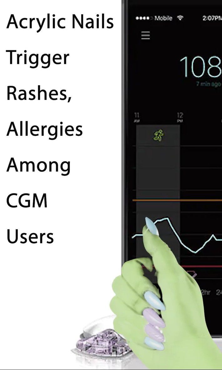 People with acrylic nails have experienced reactions on their fingers, and reports of rashes from patients with continuous glucose monitors attached to their skin have physicians taking notice. The hidden culprit, dermatologists report, is isobornyl acrylate, a component of the glue used in cosmetics and bandages -- and in acrylic nails. By: https://www.instagram.com/reel/CgrPxEjM4rq/?igshid=YmMyMTA2M2Y=