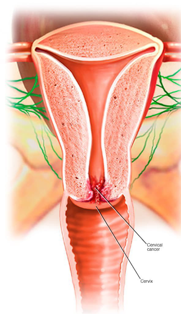Cervical cancer is a cancer that's found anywhere in the cervix. The cervix is the opening between the vagina and the womb (uterus). It's part of the reproductive system and is sometimes called the neck of the womb. Nearly all cervical cancers are caused by an infection from certain types of human papillomavirus (HPV).