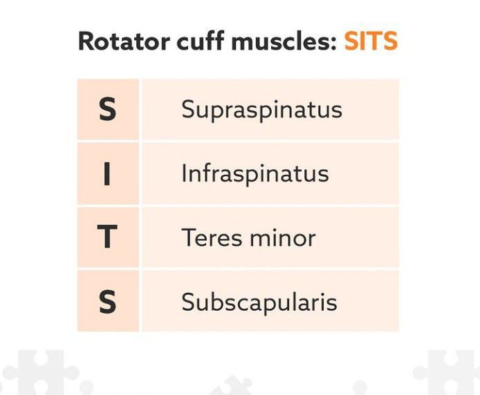 Here is ane morning to memorize the names of rotator cuff muscles.