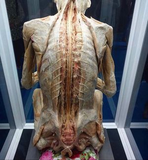 The Human Spinal Cord! ππΌ Wow! What a great image exposing the spinal cord still intact with the brain and the rest of the human body! π± . . The human spinal cord consists of nerves that connect the brain to nerves in the body. It is a superhighway for messages between the brain and the rest of the body. The spinal cord is surrounded for most of its length by the bones (vertebrae) that form the spine. The spinal cord is a long, thin, tubular bundle of nervous tissue and support cells that extends from the medulla oblongata in the brainstem to the lumbar region of the vertebral column. The brain and spinal cord together make up the central nervous system (CNS). In humans, the spinal cord begins at the occipital bone where it passes through the foramen magnum, and meets and enters the spinal canal at the beginning of the cervical vertebrae. The spinal cord extends down to between the first and second lumbar vertebrae where it ends. The enclosing bony vertebral column protects the relatively shorter spinal cord. It is around 45 cm (18 in) in men and around 43 cm (17 in) long in women. Also, the spinal cord has a varying width, ranging from 13 mm (1β2 in) thick in the cervical and lumbar regions to 6.4 mm (1β4 in) thick in the thoracic area.