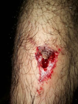 28 years old male deep leg injury caused by falling from hight