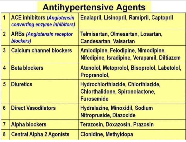Here is a list of different classes of antihypertensive drugs.
