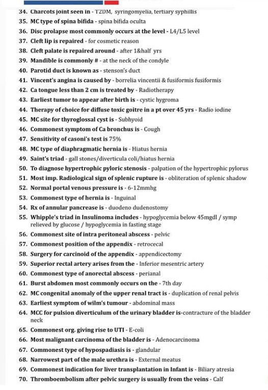 Here is an important list of points for general surgery.
