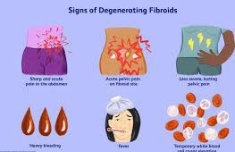 What are the symptoms of fibroids? Your symptoms will depend on the number of tumors you have as well as their location and size. For instance, submucosal fibroids may cause heavy menstrual bleeding and trouble conceiving. If your tumor is very small or you’re going through menopause, you may not have any symptoms. Fibroids may shrink during and after menopause. This is because women undergoing menopause are experiencing a drop in their levels of estrogen and progesterone, hormones that stimulate fibroid growth. Symptoms of fibroids may include: heavy bleeding between or during your periods that includes blood clots pain in the pelvis or lower back increased menstrual cramping increased urination pain during intercourse menstruation that lasts longer than usual pressure or fullness in your lower abdomen swelling or enlargement of the abdomen