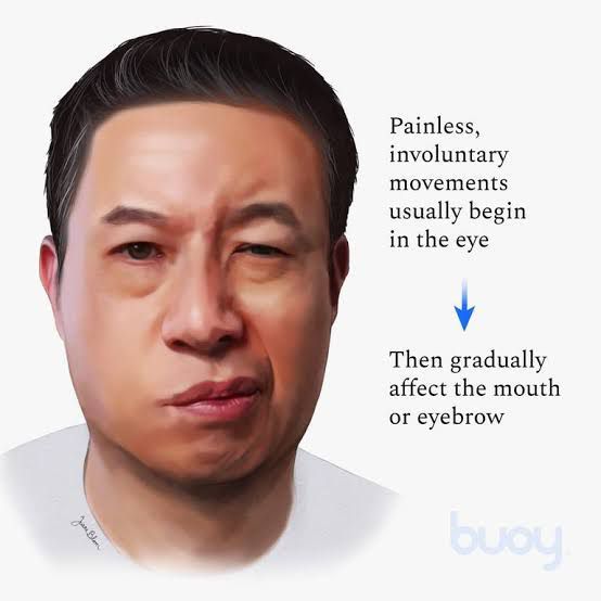 Hemifacial spasm is a nervous system disorder in which the muscles on one side of your face twitch involuntarily. Hemifacial spasm is most often caused by a blood vessel touching or pulsating against a facial nerve. It may also be caused by a facial nerve injury or a tumor.
