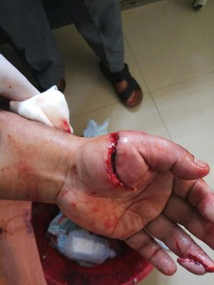 Clean wound, X-ray it, if not involving bones, then suture , tetanus shot