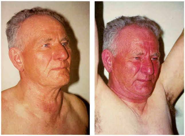 Sign of submerged goitre. Pemberton sign occurs when the thoracic inlet becomes obstructed during positional changes, resulting in compression of the jugular veins. It is a common manifestation of retrosternal goiter but may also occur with lung carcinoma, lymphoma, thymoma, or aortic aneurysms.