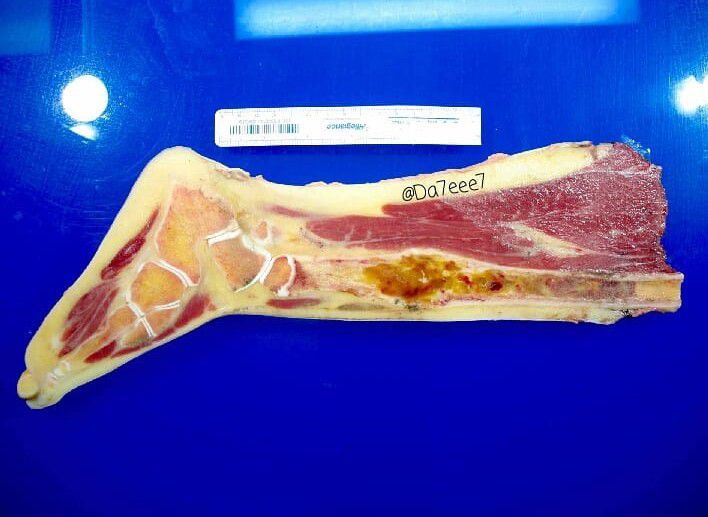 Bisection of this below the knee amputation reveals a tibial osteosarcoma in this teenaged patient who received neoadjuvant chemotherapy. Microscopic examination revealed a favorable histologic treatment response with >90% tumor necrosis. By: https://www.instagram.com/p/BsF2-nkhoTZ/?utm_source=ig_web_copy_link