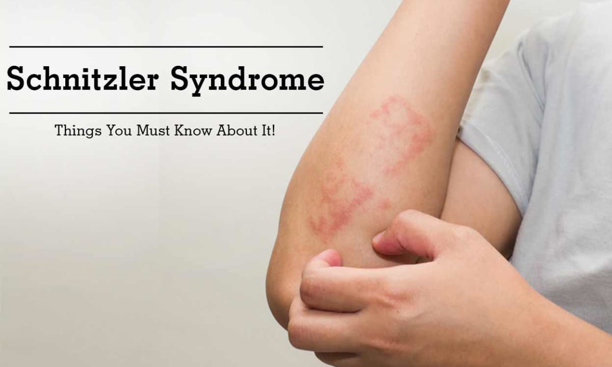 The Schnitzler syndrome is a rare and acquired systemic disease which bears in common many features with a group of inherited diseases referred to as auto-inflammatory syndromes. Its main clinical features include fever, an urticarial rash, muscle, bone and/or joint pain and enlarged lymph nodes.