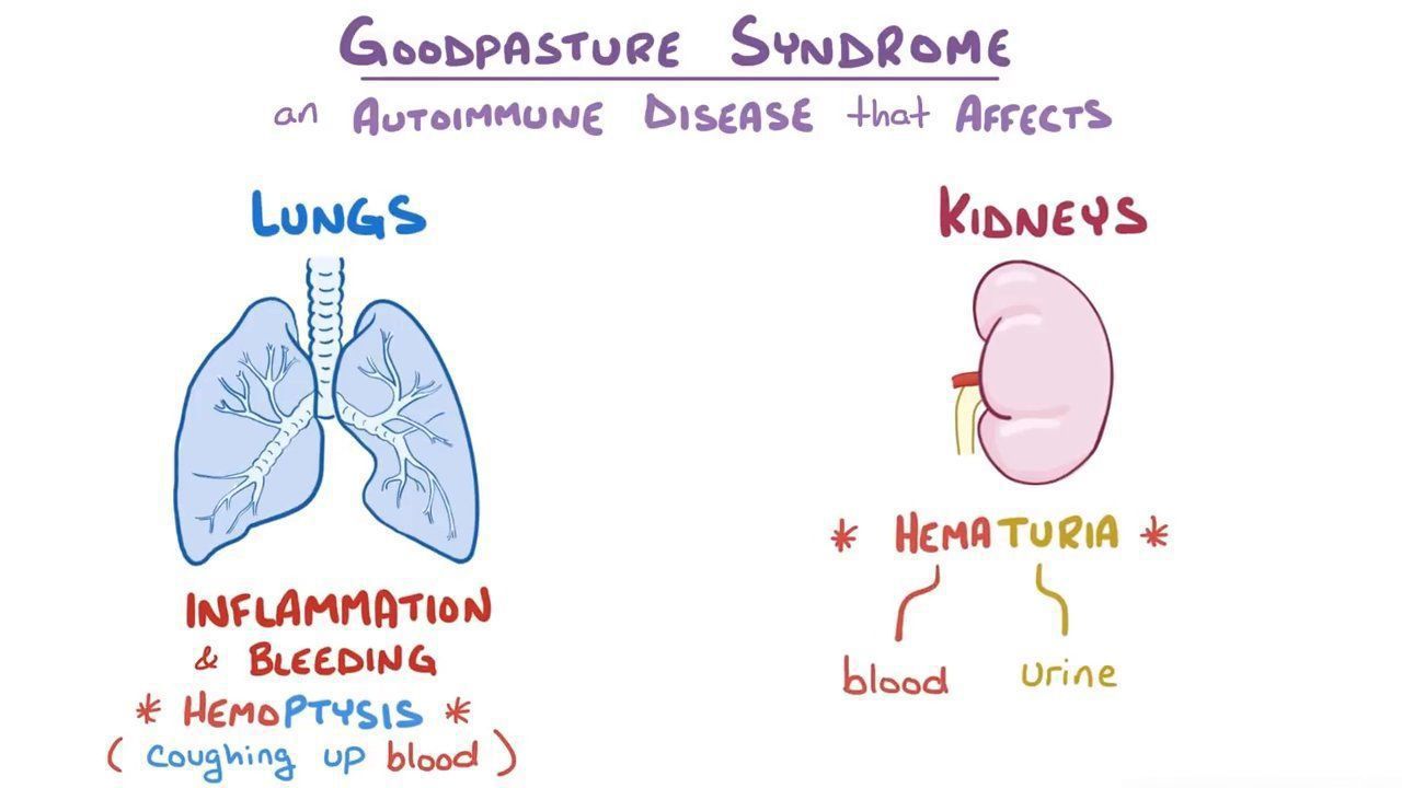 Goodpasture syndrome is a rare disorder in which your body mistakenly makes antibodies that attack the lungs and kidneys. It most often occurs in people ages 20 to 30 or older than age 60. It is more common in men. It can be fatal if not quickly diagnosed and treated.