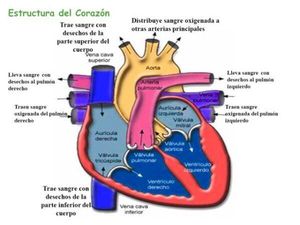 Partes del corazón Desde el exterior, el corazón está rodeado por una pared de doble membrana, que se llama pericardio. En su superficie, se pueden ver los límites de las cavidades del corazón y la red coronaria, responsable de la nutrición del corazón. La función primaria del pericardio es servir de membrana protectora y, con la ayuda de ligamentos, proporcionar la conexión del corazón con el esternón, la columna vertebral y otras partes de la cavidad torácica. Hacia el interior del miocardio se encuentra la pared del corazón, que desde el punto de vista histológico, tiene tres capas. La capa más externa es una capa de epitelio escamoso (endotelio). En su parte inferir, hay una capa de músculo (miocardio, puede saber más aquí) especial, exclusivo para el tejido muscular del corazón. La capa más interna es el endocardio, que consta de unas membranas delgadas de tejido conectivo. El sistema de cavidades del corazón se divide en dos partes por un septo longitudinal (cordis septum) para formar la derecha y la izquierda del corazón. Estas cavidades están divididas en más partes separadas por las válvulas de la membrana interna cardiaca para formar dos ventrículos y aurículas en ambas partes del corazón. Así se forman las cuatro cavidades del corazón. Las cavidades en la parte superior se llaman aurículas (atrios) y las cámaras inferiores, ventrículos. La función básica de las aurículas es recibir la corriente de sangre, por lo que tienen músculos delgados, dilatables, de capa doble, mientras que la tarea principal de los ventrículos es la contracción para garantizar que la sangre llegue a cada punto del cuerpo. Por eso, su estructura se caracteriza por un músculo más grueso de tres capas. Para que el flujo de sangre pueda ser totalmente continuo, los músculos del corazón tienen unas complicadas características de repliegue circular. Diagram of the human heart (cropped) La aurícula derecha (atrium dextrum) es una cavidad de forma ovalada cuyas paredes interiores son en parte lisas (seno venoso) y en parte estriadas (atrio primitivo). En esta cavidad desembocan las dos venas más grandes del cuerpo, que son la vena inferior (vena cava inferior) y la vena superior vacía (vena cava superior). La vena superior vacía transporta la sangre al corazón desde las partes superiores del cuerpo (cabeza, cuello, extremidades superiores), mientras que la vena inferior lo hace desde las partes restantes del cuerpo. En la mitad derecha del corazón está el orificio de la vena derecha (venosum ostium dextrum), que conecta el ventrículo derecho y la aurícula derecha. Las arterias coronarias (seno coronario) – que recogen la sangre propia del corazón – desembocan en la aurícula derecha entre el orificio de la vena derecha y la salida de la vena superior vacía. El ventrículo derecho se sitúa en la parte delantera del pecho, ajustándose al esternón y a las costillas. Su sección transversal es de forma semilunar, con aprox. 5 mm de espesor, que rodea el ventrículo izquierdo. Entre el orificio de la vena derecha y el ventrículo derecho, se encuentran las tres válvulas de vela (válvula tricuspidalis) que proporcionan el flujo unidireccional de la sangre. Las válvulas de la membrana interna del corazón se unen con cuerdas tendinosas (chordae tendineae) al músculo papilar (papillares musculi) de la pared del ventrículo. La arteria pulmonar parte del orificio del ventrículo derecho, en cuya salida se encuentran tres válvulas en forma de media luna (válvula semilunar). Su ajuste perfecto facilita el flujo unidireccional de la sangre. La estructura oval de la aurícula izquierda (sinistrum atrio) es similar a la de la aurícula derecha. Se encuentra en el lado trasero del corazón; la sangre llega aquí desde los pulmones a través de las dos venas pulmonares. La cavidad venosa izquierda está dividida por el orificio venoso izquierdo (ostium venosum sinistrum) a través del cual la sangre llega de la aurícula izquierda al ventrículo izquierdo. En la frontera del orificio y el ventrículo izquierdo se encuentra la válvula de dos velas (válvula bicúspide). La estructura del ventrículo izquierdo es similar a la del ventrículo derecho, sin embargo, el espesor de su pared es mucho más grande, de unos 10 mm. La arteria principal del cuerpo – la aorta – sale del orificio de la arteria izquierda, cuyo extremo del lado del corazón se cierra por tres válvulas de forma semilunar. Las arterias coronarias propias del corazón (arterias coronarias) salen de entre la pared de la aorta y las válvulas, esta zona se llama el seno Walsava derecho e izquierdo (seno Valsavae). Son éstas las arterias coronarias que proporcionan el flujo sanguíneo al corazón, su oclusión causa infarto de miocardio. En el tabique interauricular, se halla la fosa oval, que permanece como resto de la circulación fetal. Funcionamiento del corazón Las aurículas reciben la sangre que llega desde los pulmones y el cuerpo, esa sangre se deriva a los ventrículos, que luego la bombean a los pulmones y a todo el cuerpo. La mitad derecha del corazón es responsable del bombeo de la sangre procedente del cuerpo, que es más oscura y pobre en oxígeno, mientras que la mitad izquierda se ocupa de la sangre de color rojo brillante, rica en oxígeno, que llega desde los pulmones. La sangre pobre en oxígeno y la sangre enriquecida en oxígeno no se mezclan entre sí gracias a los llamados tabiques (septo en latín), que dividen las aurículas y los ventrículos. Ese tabique auricular o ventricular impide que los dos tipos de sangre se mezclen. Proceso del flujo de sangre: La sangre pobre en oxígeno del cuerpo es conducida a la aurícula derecha del corazón por dos venas grandes, de ahí – a través de la válvula tricúspide – llega al ventrículo derecho, de donde el corazón la bombea a los pulmones. La sangre que llega a los pulmones se refresca y se llena de oxígeno y lu