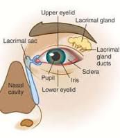 The lacrimal apparatus consists of the lacrimal glands, lacrimal canaliculi, lacrimal sac, and nasolacrimal duct. The lacrimal gland is a serous, compound tubuloalveolar gland whose secretory acini are surrounded by myoepithelial cells.