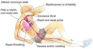 Hypovolemic Shock Signs and Symptoms How hypovolemic shock shows up can depend on a number of things, including: Your age Your past medical care and overall health The cause of the shock or the source of the injury How quickly you lost the blood or fluids How much your blood volume has dropped