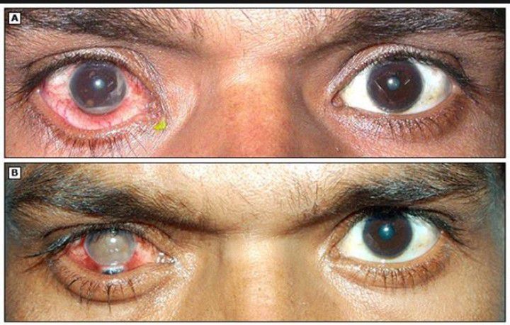 Blurry vision, and light sensitivity may be the only reported symptoms. Other complaints may include headache, redness of the eye, floaters, or flashes. Patients may also be asymptomatic.